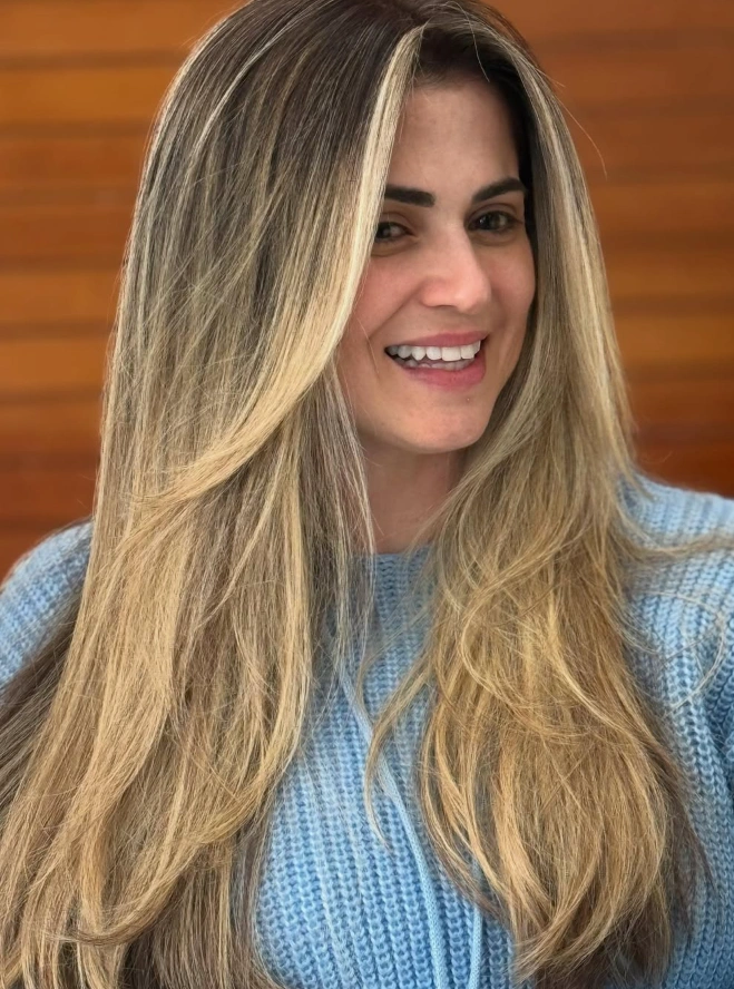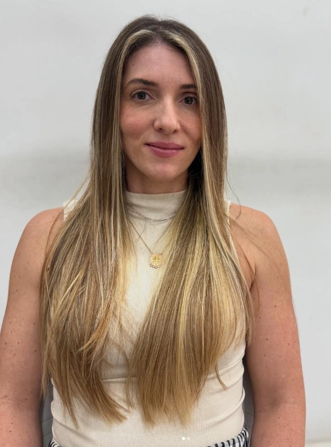 "Profissional excelente, utiliza os métodos mais atuais deixando os cabelos lindos e saudáveis… Fiz progressiva com ela e ameiiiii… não largo mais… Faz um loiro lindo e maravilhoso."